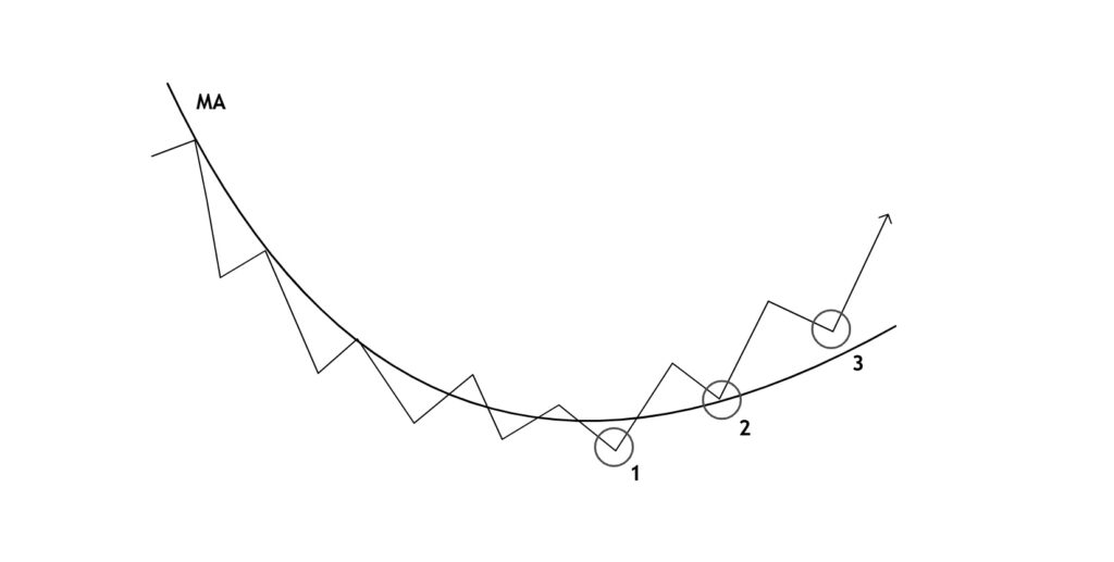 3.こちらのMAribbonチャートでエントリーすべきポイントとして正しいのはどこでしょうか?